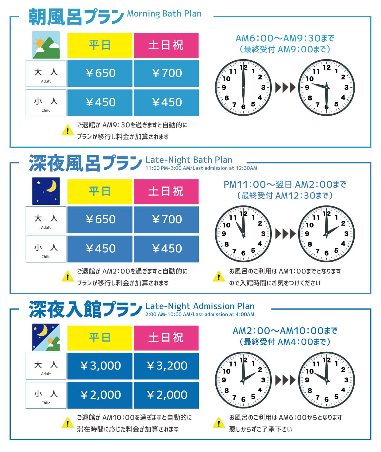 - 朝風呂・深夜風呂プラン・深夜入館プラン