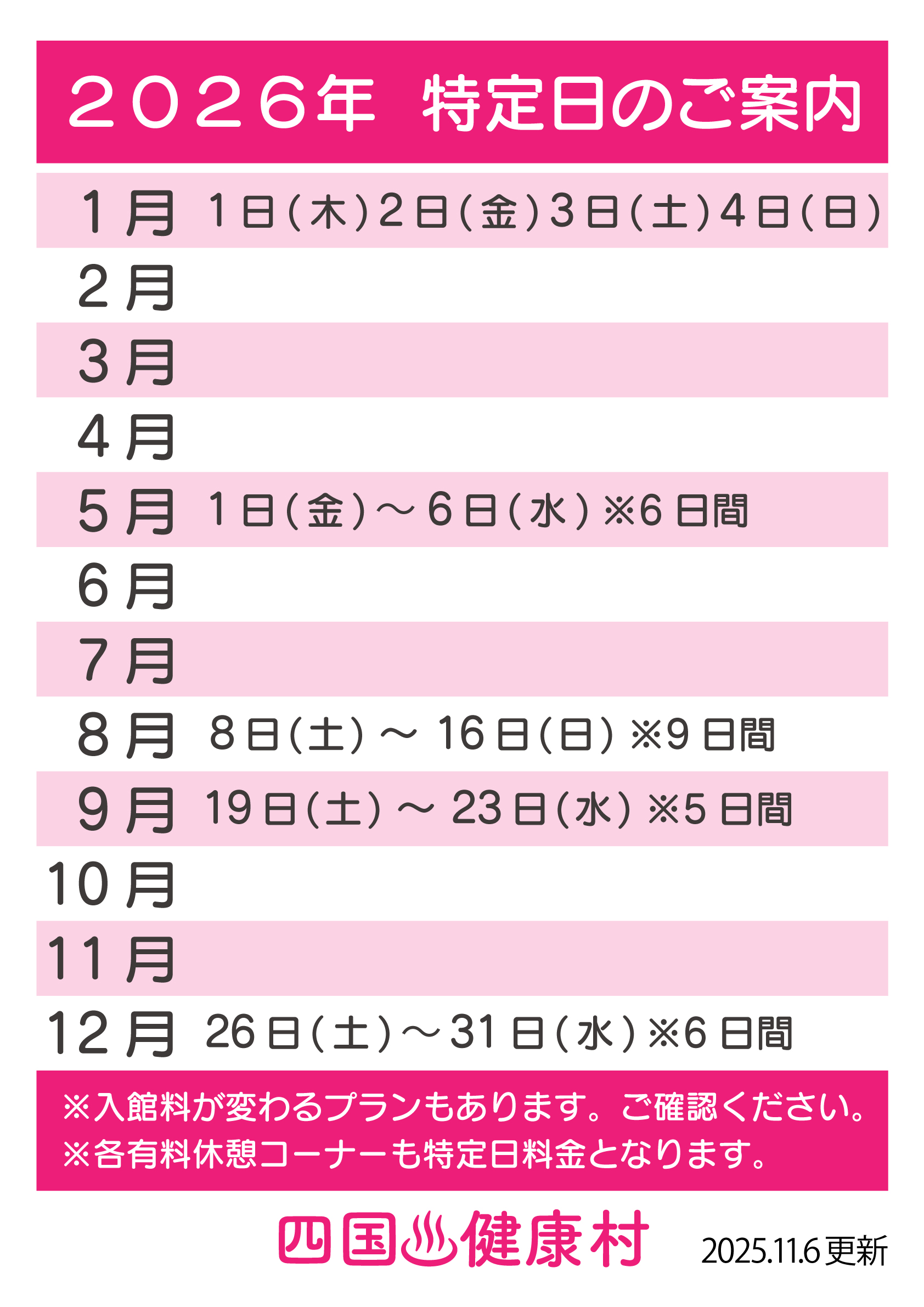 ※招待券・回数券、各種割引券はお支払い時にご使用ください。