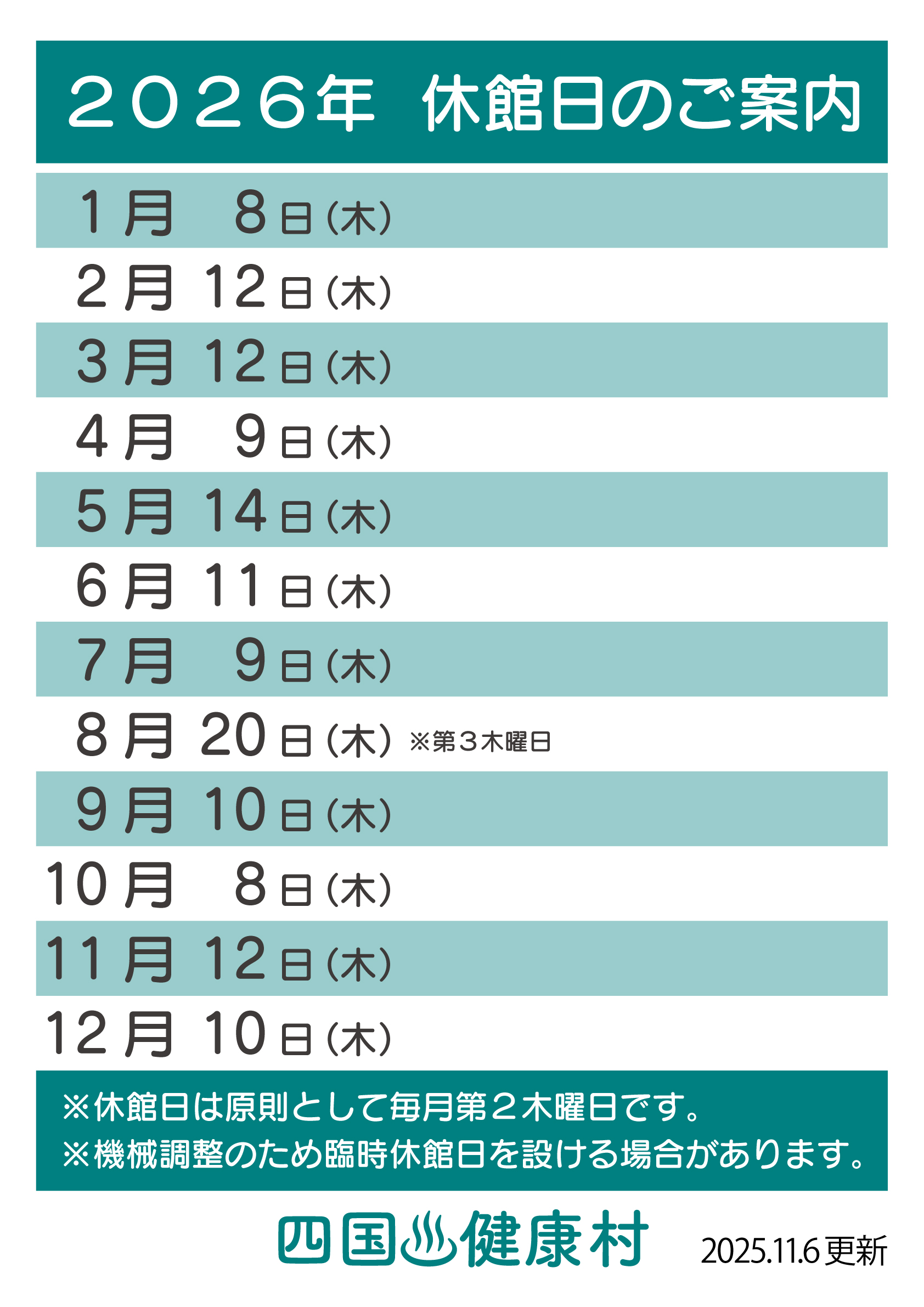 〇午前1:00〜午前6:00の間は浴室清掃時間となり、ご入浴はできません。