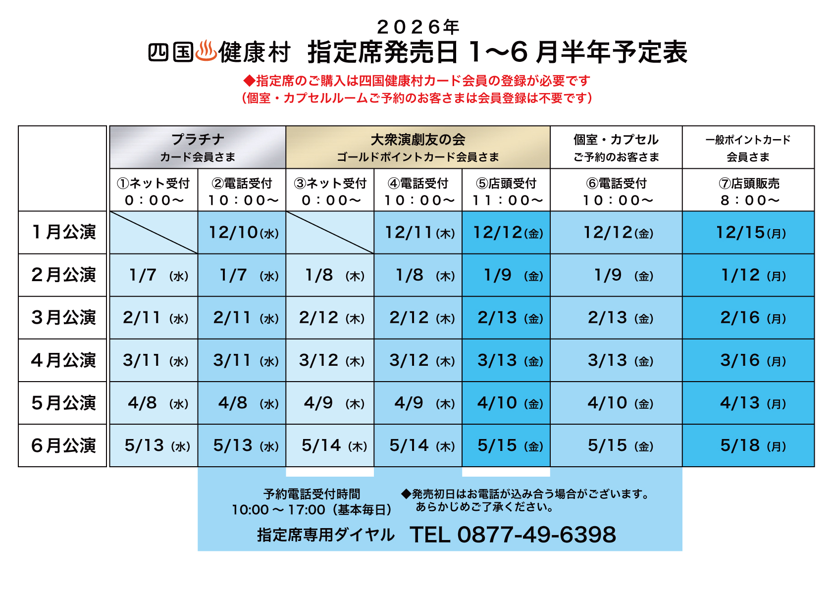 指定席の電話予約が出来るゴールドポイントカードを発行いたしております。