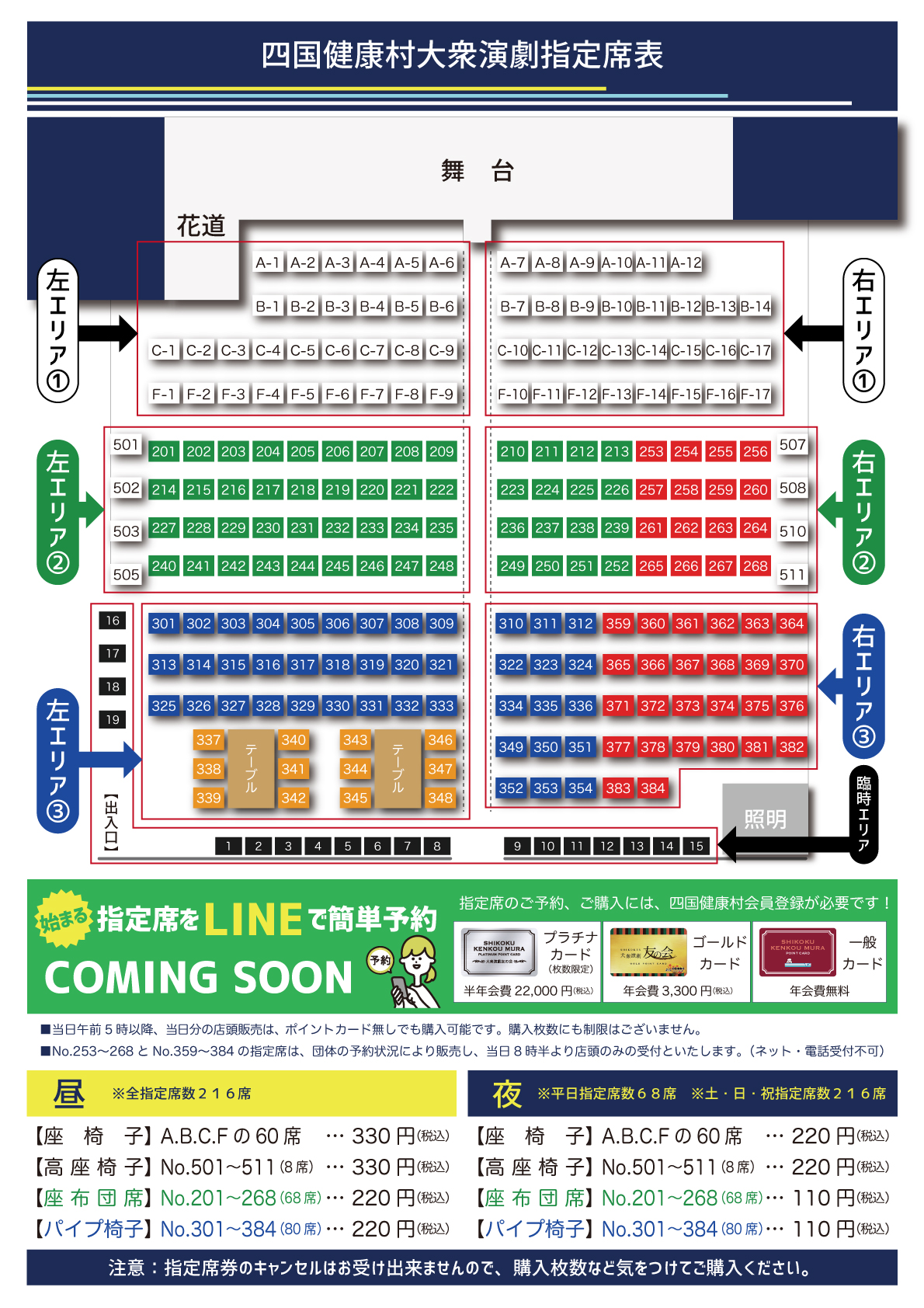 | 座布団席・パイプ椅子席 220円 (税込)/全日 | |